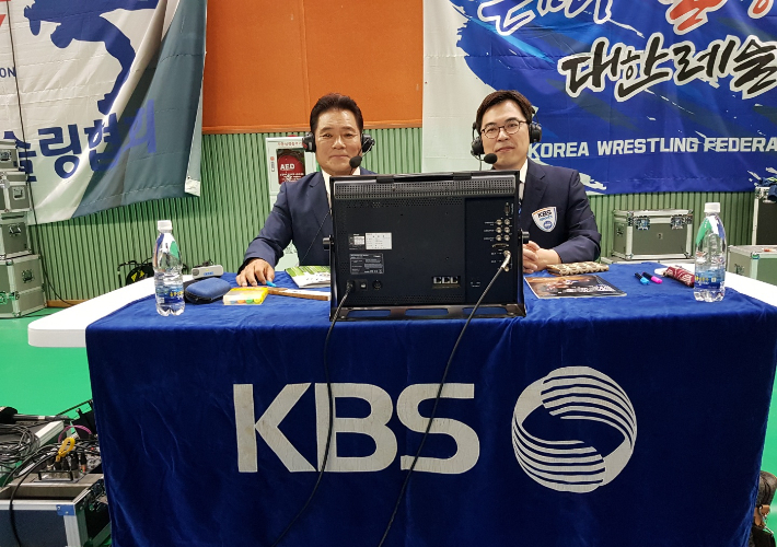 KBS 레슬링 해설위원으로서 올림픽과 아시안 게임 등 주요 국제 무대에서 입심을 자랑했다(사진 왼쪽). 한명우 제공"레슬링을 그만두겠다." 8년 뒤에 터져 나왔던, 분노에 가득 찬 그의 일갈이다.