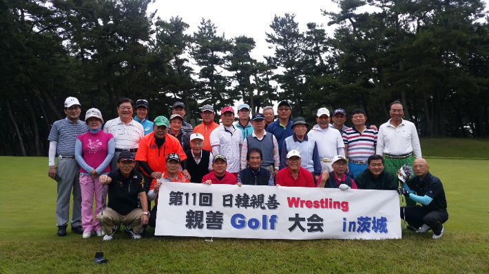 그가 회장을 맡고 있는 레골회(레슬링 골프 동호회)는 일본 레슬링인 동호회와 매년 한 차례씩 정기적으로 교류하고 있다. 2017년 일본 이바라키(茨城)에서 열린 제11회 교류전이 끝나고 양국 레슬링인들이 같이했다. 한명우 제공한명우에겐, 골프도 건강한 삶을 즐기는 데 빼놓을 수 없는 생활체육이다. 핸디 싱글의 상당한 수준에서도 그의 운동신경과 자질을 엿볼 수 있다.